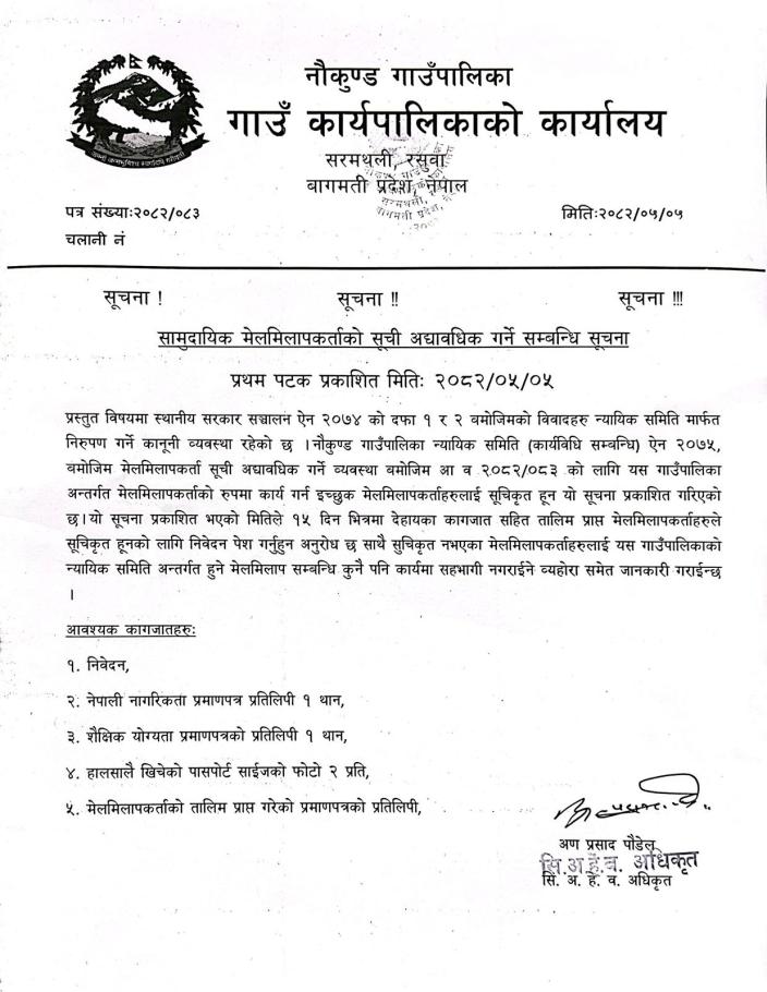 » सामुदायिक मेलमिलापकर्ताको सूची अद्यावधिक गर्ने सम्बन्धि सूचना ।