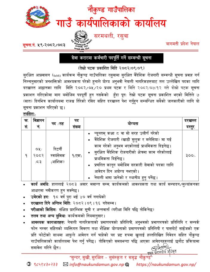 रिटर्नी स्वयंसेवक (आंशिक) पदमा सेवा करारमा कर्मचारी पदपूर्ति गर्ने सम्बन्धी सूचना