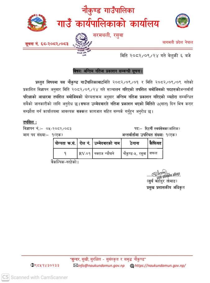 रिटर्नि स्वयंसेवक (आंशिक) पदको अन्तिम नतिजा प्रकाशन सम्बन्धी सूचना।