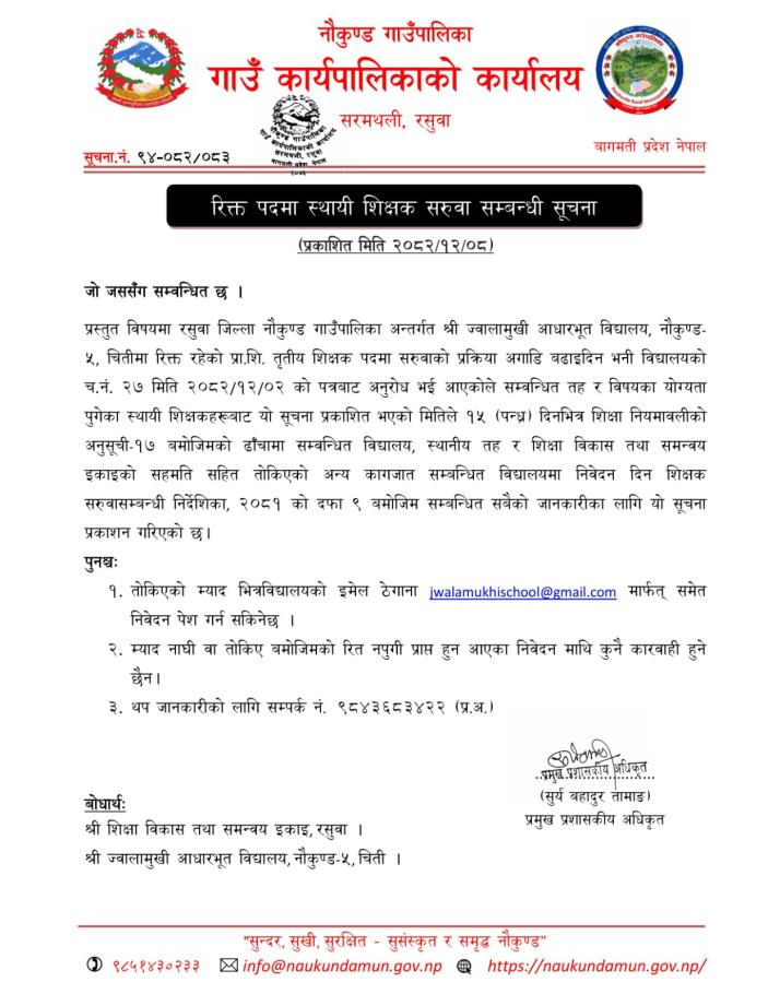 रिक्त पदमा स्थायी शिक्षक सरुवा सम्बन्धी सूचना