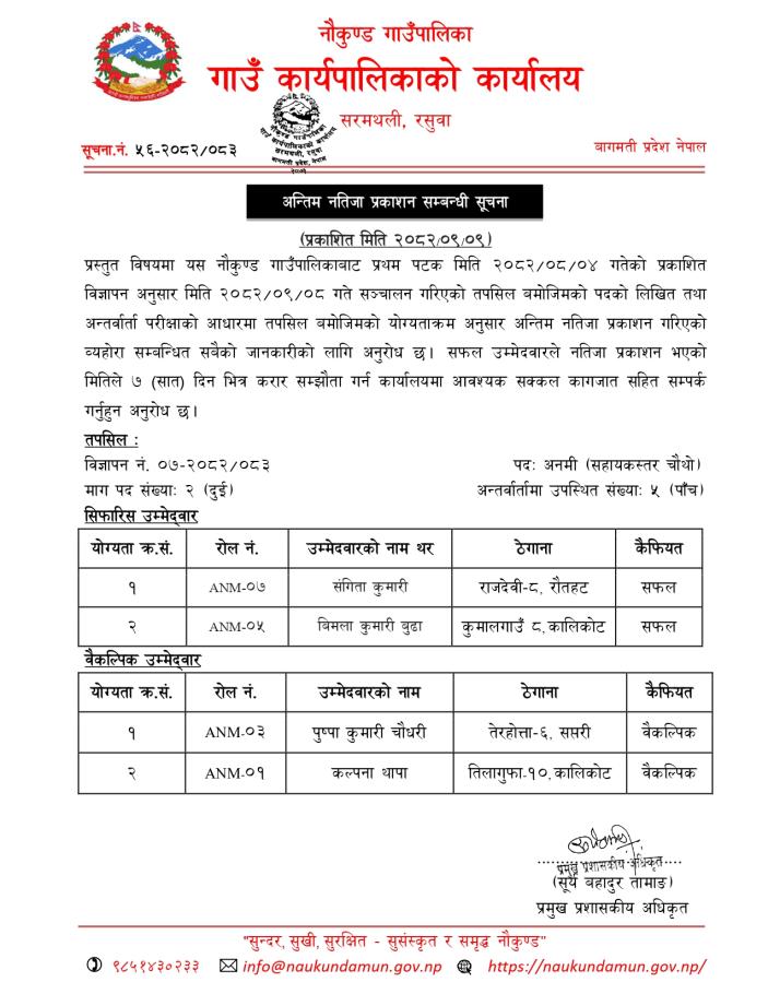 अ.न.मी. को अन्तिम नतिजा प्रकाशन सम्बन्धी सूचना ।