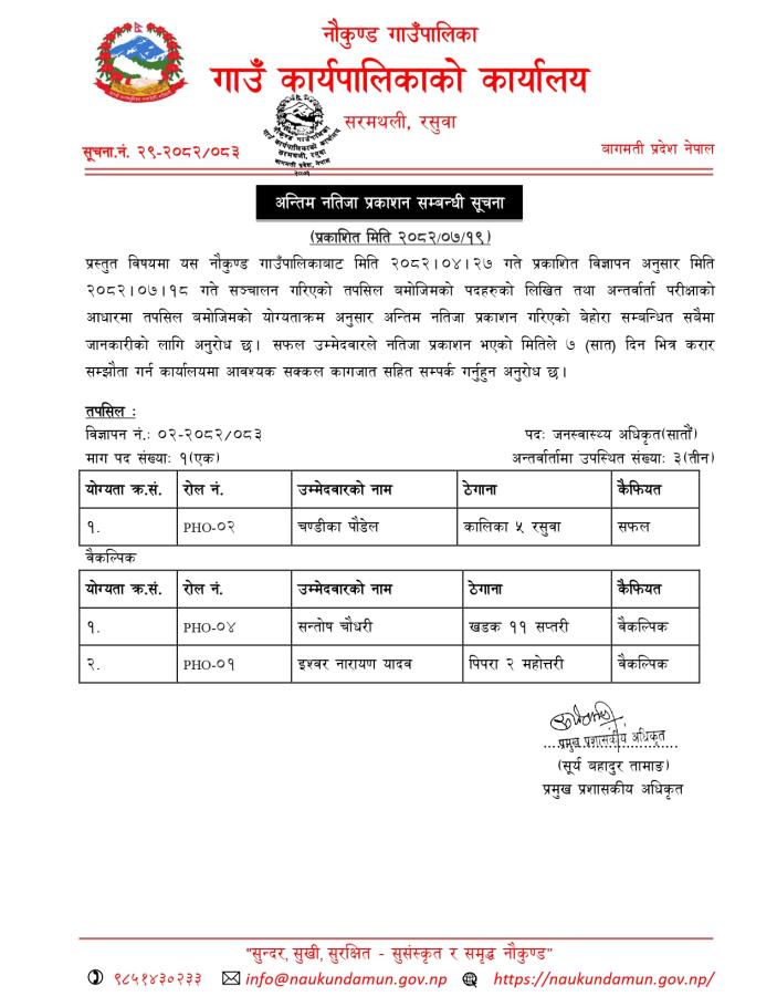 ज.स्वा.अ को अन्तिम नतिजा प्रकाशन ।