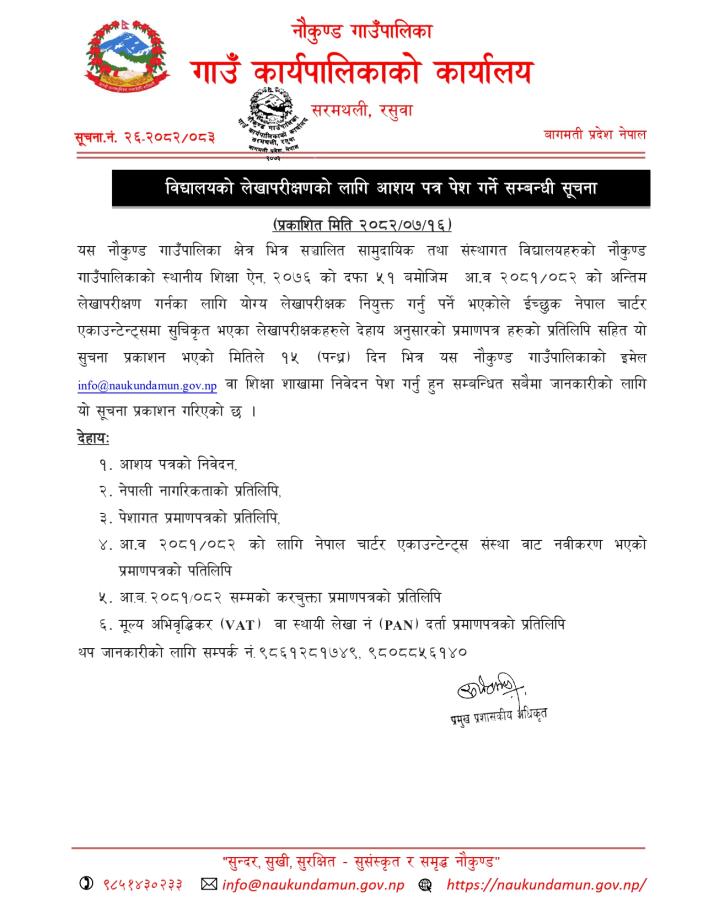 लेखापरीक्षणको लागि आशय पत्र पेश गर्ने सम्बन्धी सूचना ।