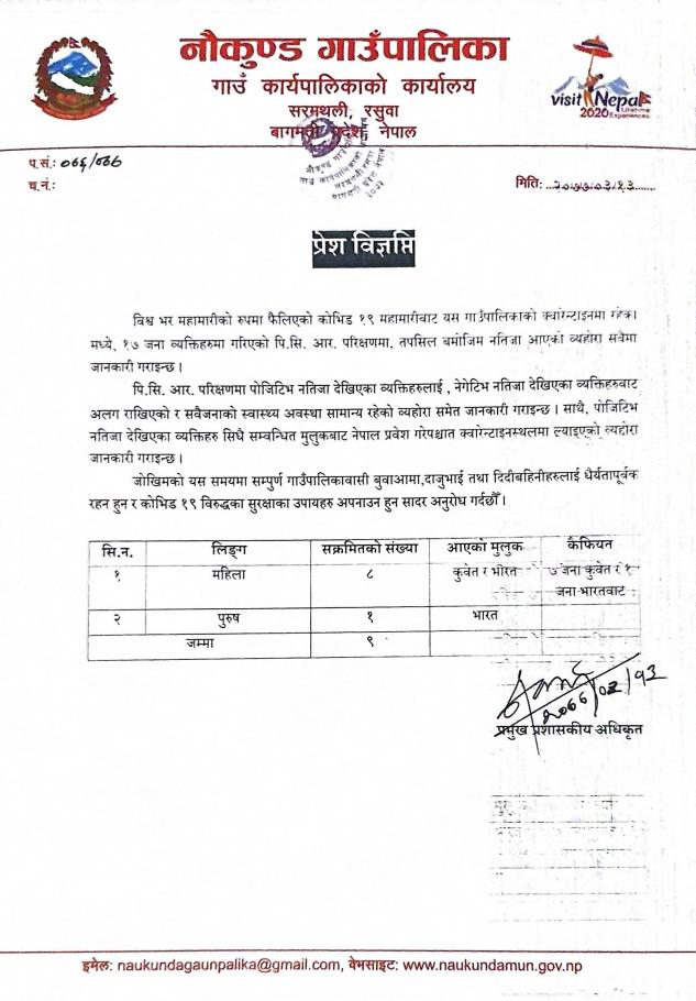 नौकुण्ड गाउँ पालिकाकाको प्रेस विज्ञप्ति ।।