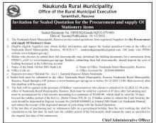 Invitation for Sealed Quotation for the Procurement and supply Of Stationery items