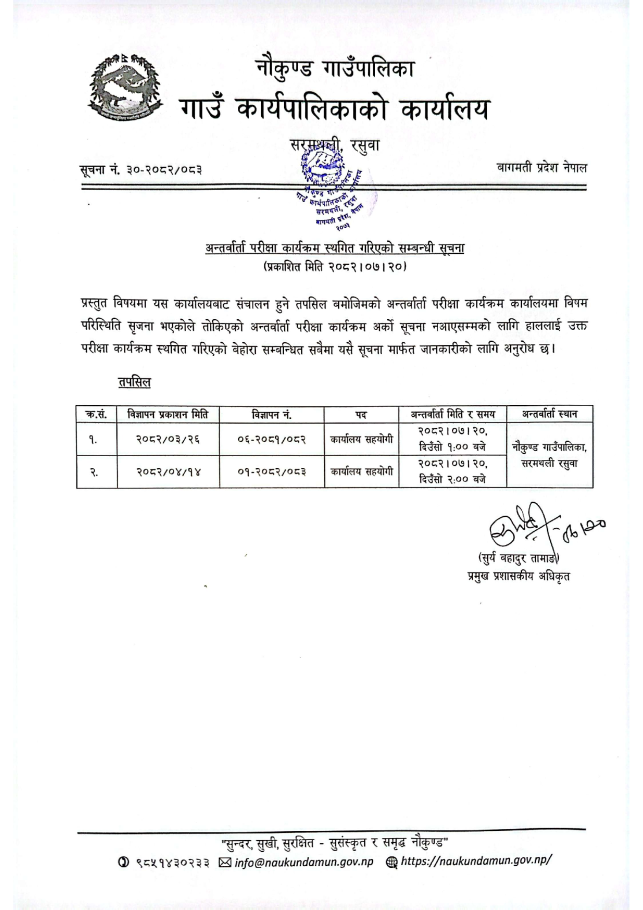 अन्तर्वार्ता परीक्षा कार्यक्रम स्थगित गरिएको सम्बन्धी सूचना